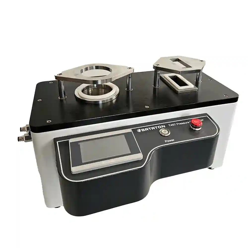 化学防护服压力罐测试仪也称为压力罐测试仪,用于化学防护服材料的耐磨性和耐屈挠性评价。试验时,将原始试样和磨损屈挠处理过的试样,固定在压力罐上,提供(-1000±10)pa的负压,比较1分钟之后的压力变化。