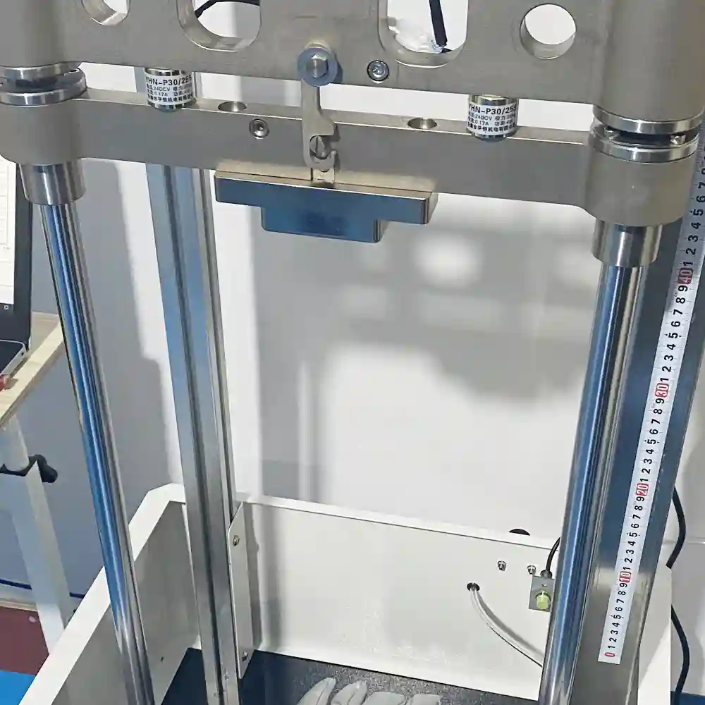 防护服材料耐冲击试验机主要用于测试手套,摩托车防护服,护膝等的耐冲击性能。试验时,将冲击锤提升到所需冲击能量的高度,释放冲击锤,其沿垂直导向路径下落到放置在试验砧台上的样品上,下落锤的中轴与砧的中轴重合。记录冲击试验力峰值,检查样品是否被撕裂或穿孔。
